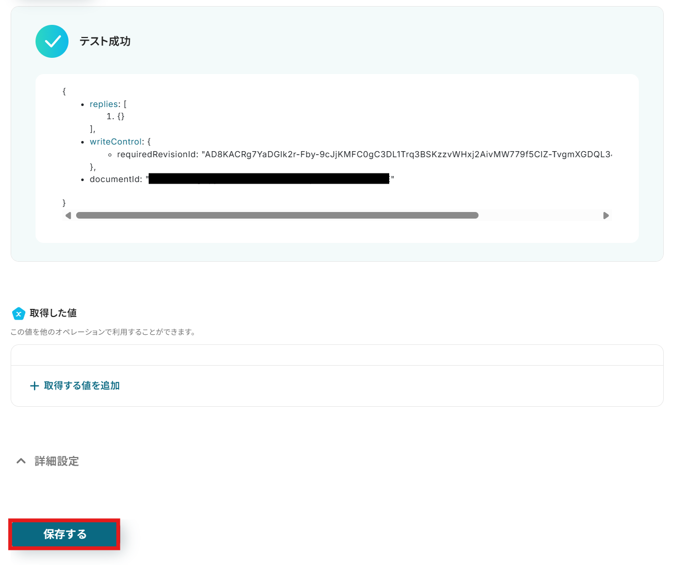 なお、ここで取得した値を後の設定で活用することで、TypeformのデータをGoogleドキュメントに自動転記可能です!