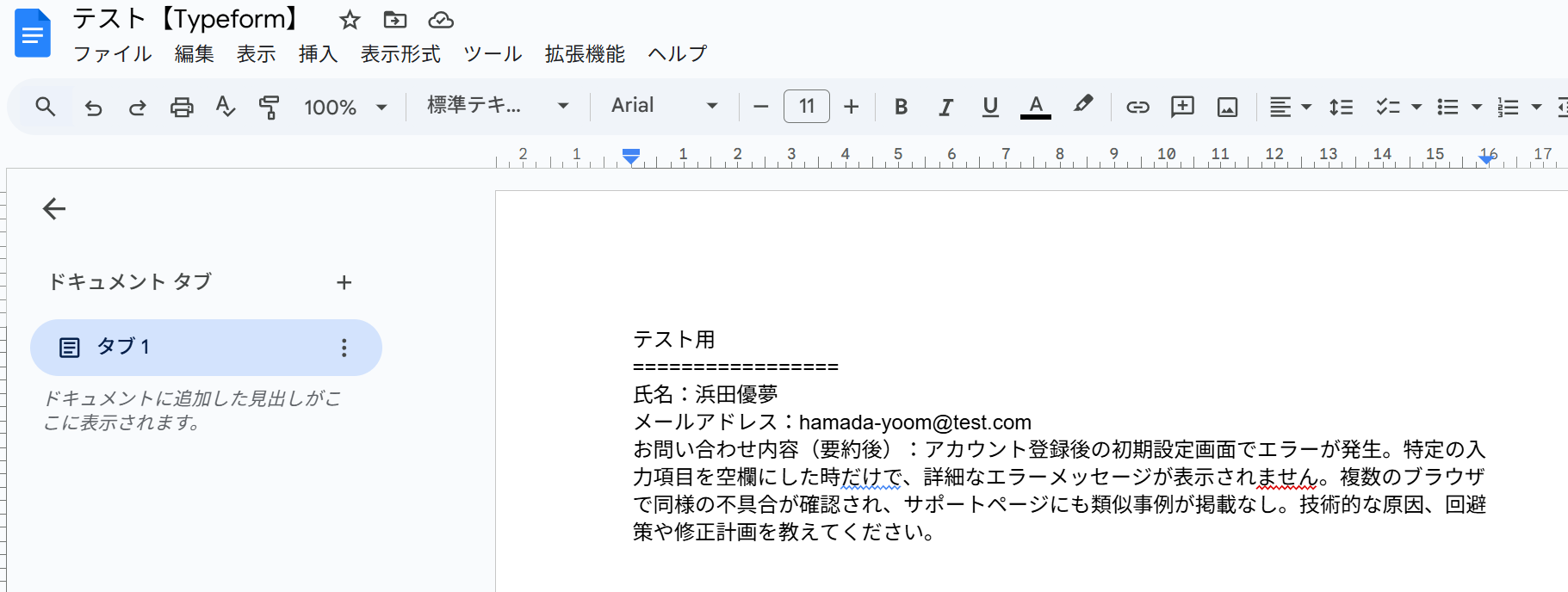 「Typeformで集めたアンケートの回答を、Googleドキュメントに手作業で転記している…」