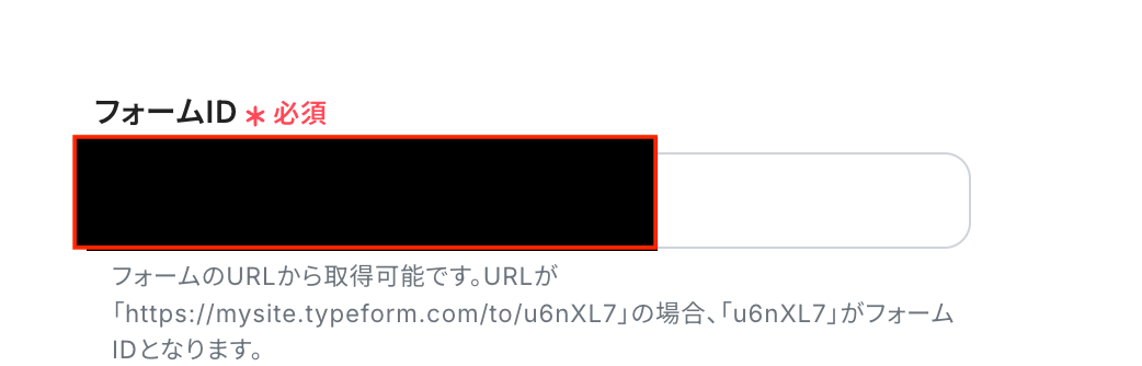 フォームIDはTypeformのURLを確認し入力しましょう。そのため、フォームの作成がまだの場合はこの段階で作成する必要があります。