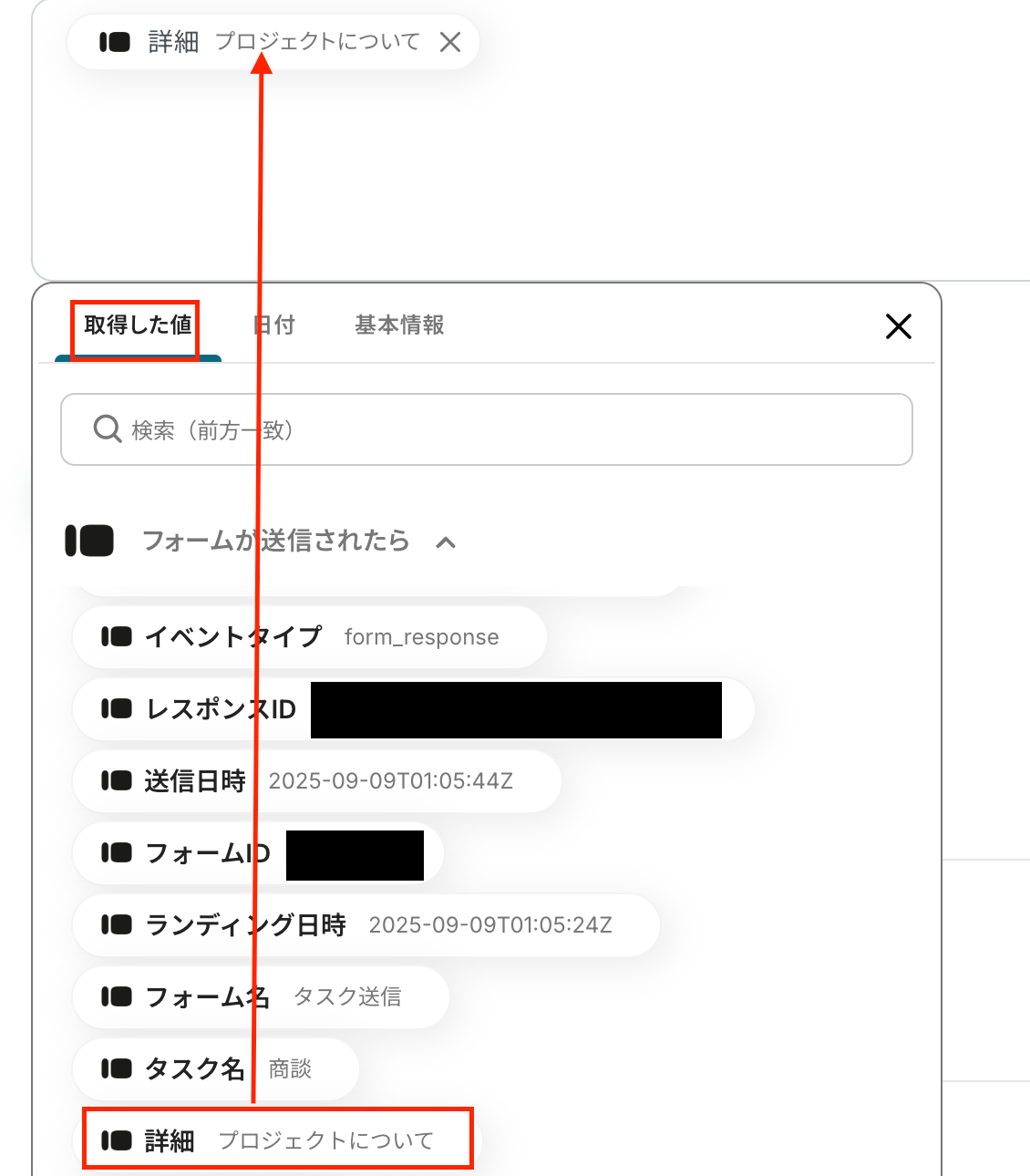 ここで取得した値は次の設定で活用し、Trelloに自動追加するデータとなります。そのため、手動で取得した値を追加する場合は、Trelloに反映したいデータのみを選択しましょう。