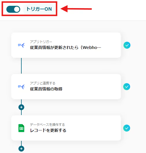 これで「freee人事労務の従業員情報が更新されたらGoogle スプレッドシートの従業員管理表も更新する」の設定はすべて完了になります。