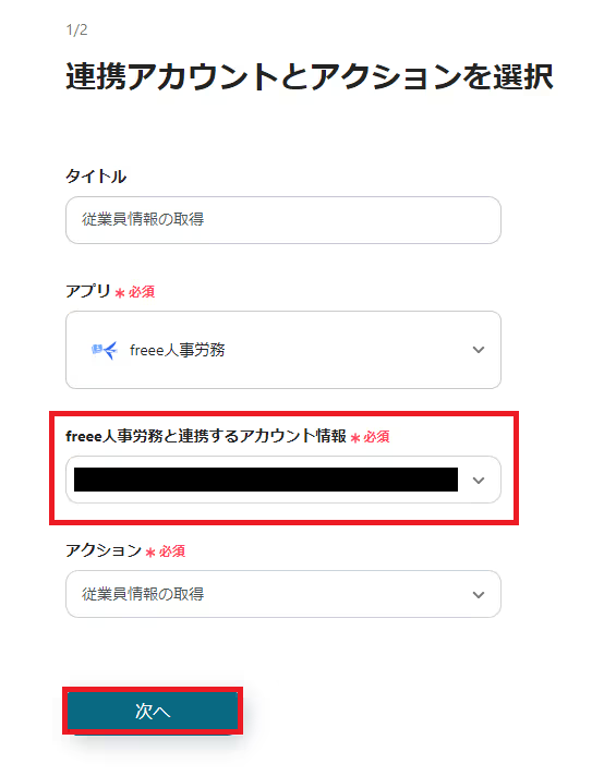 連携するアカウントとトリガーアクションを確認して、「次へ」をクリックしてください。
