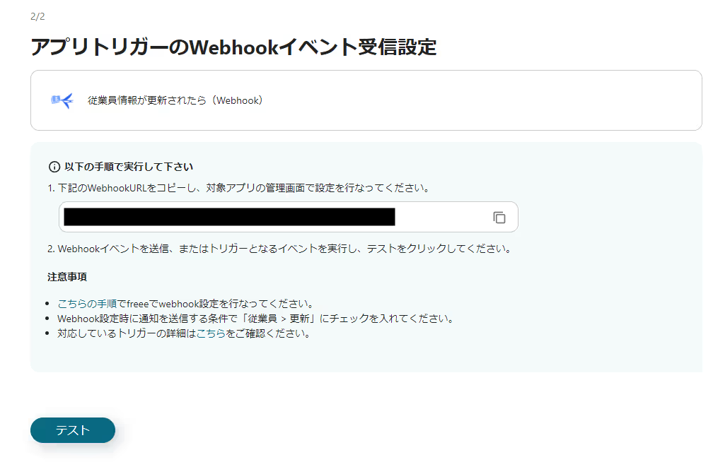 詳しい手順は、freeeでWebhook設定を行うをご参照ください。