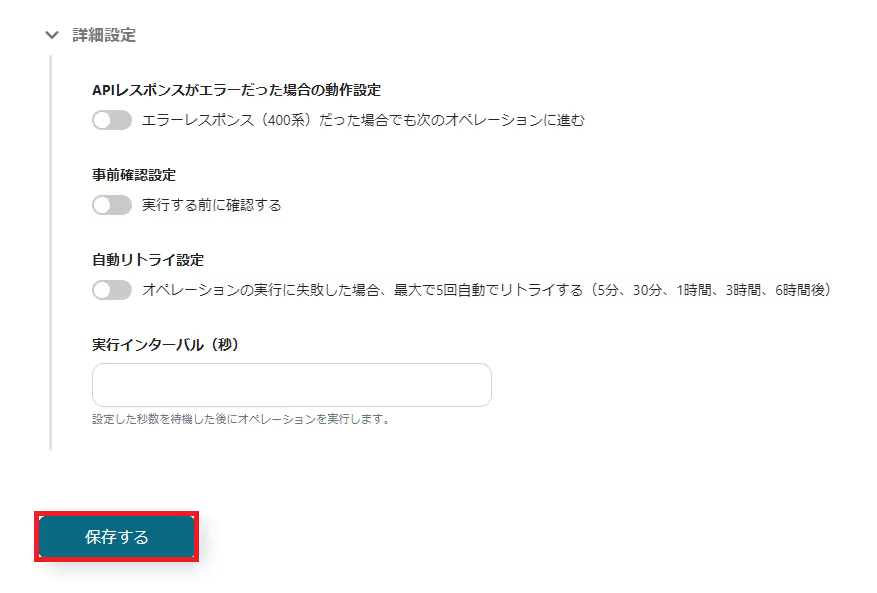下にスクロールして、任意で詳細設定を設定して保存してください。