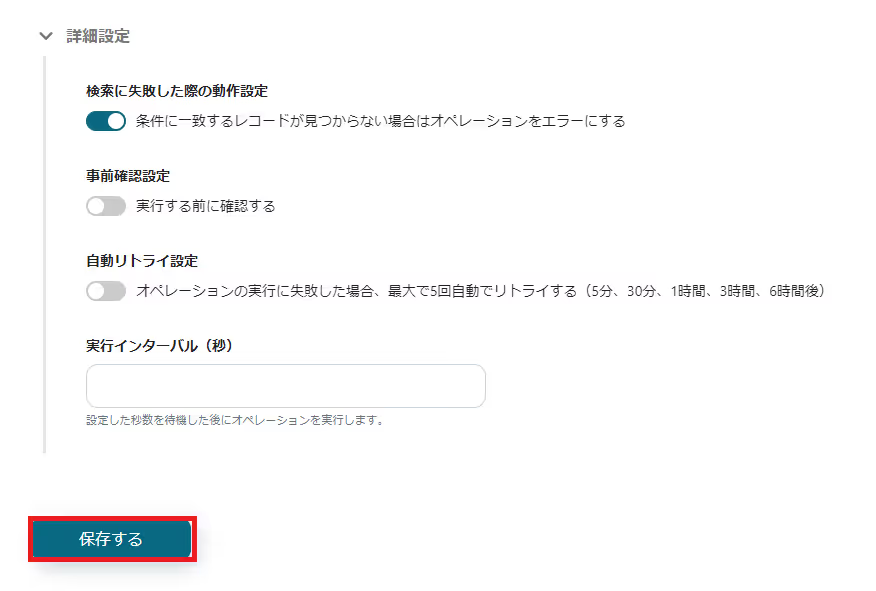 ※Google スプレッドシートからレコードを取得する際、「値が空である」という条件では検索できません。詳しい対応方法は、「Google スプレッドシートのレコード取得における注意点と対応方法について」をご確認ください。