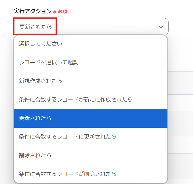 「実行アクション」は、プルダウンから選択してください。