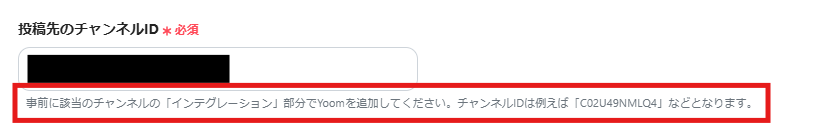 「投稿先のチャンネルID」は、入力欄下の説明に従って入力してください。
