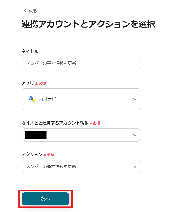 まずは、連携アカウントとアクションを設定します。
