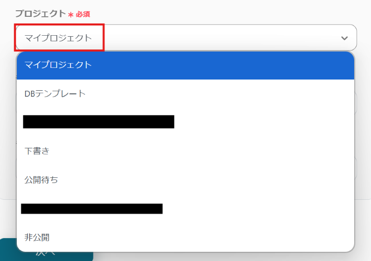 「データベースの連携」の各項目は、プルダウンから選択してください。