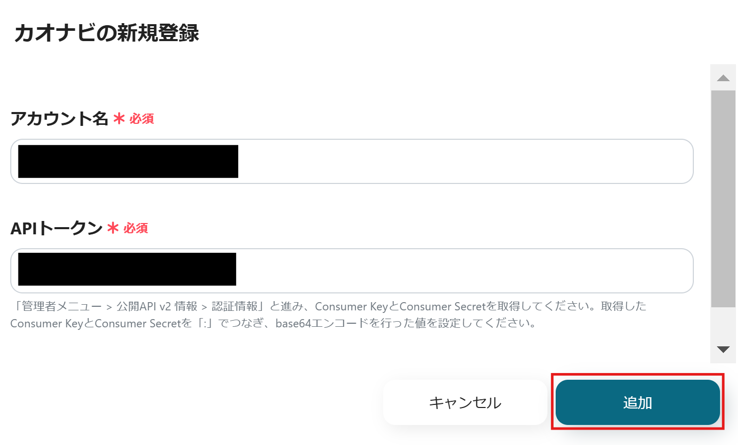 表示された画面で、必須項目を入力し、「追加」をクリックしてください。
