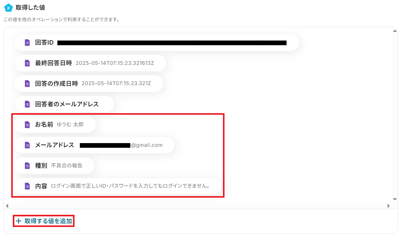 ※Googleフォームをトリガーに設定した場合の回答データの取得方法についてはこちらを参考にしてみてくださいね!
