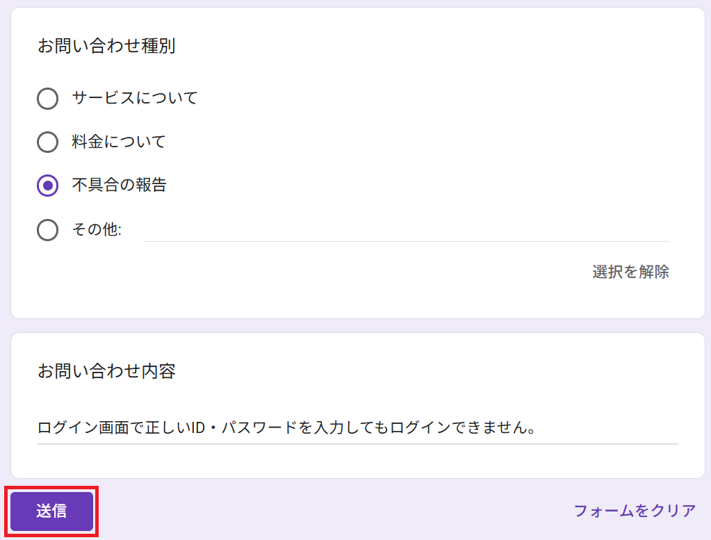 今回は以下のようなフォームを作り、自分で回答してみました。