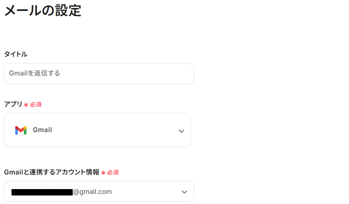 メールの設定に入ります。まず連携するアカウントが正しいか確認してください。
