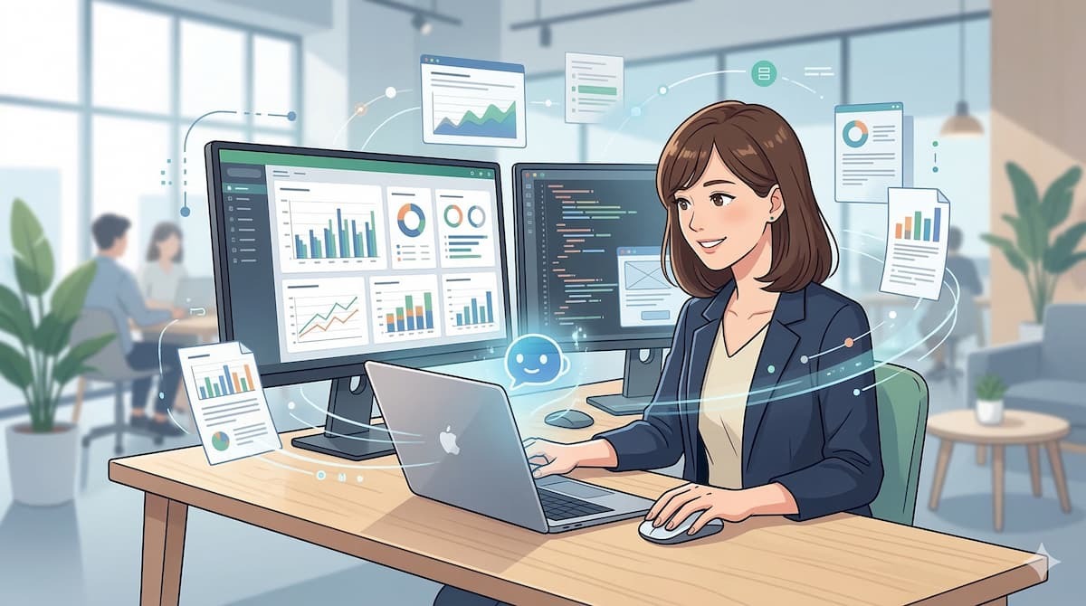 日常業務の中で発生する煩雑な定型作業を、AIが肩代わりしてくれるメリットも見逃せません。 例えば、長文のドキュメントを読み込んで要点を抽出する作業や、複数のデータからレポートの草案を作成するといった手間のかかるプロセスを、素早く処理してくれます。