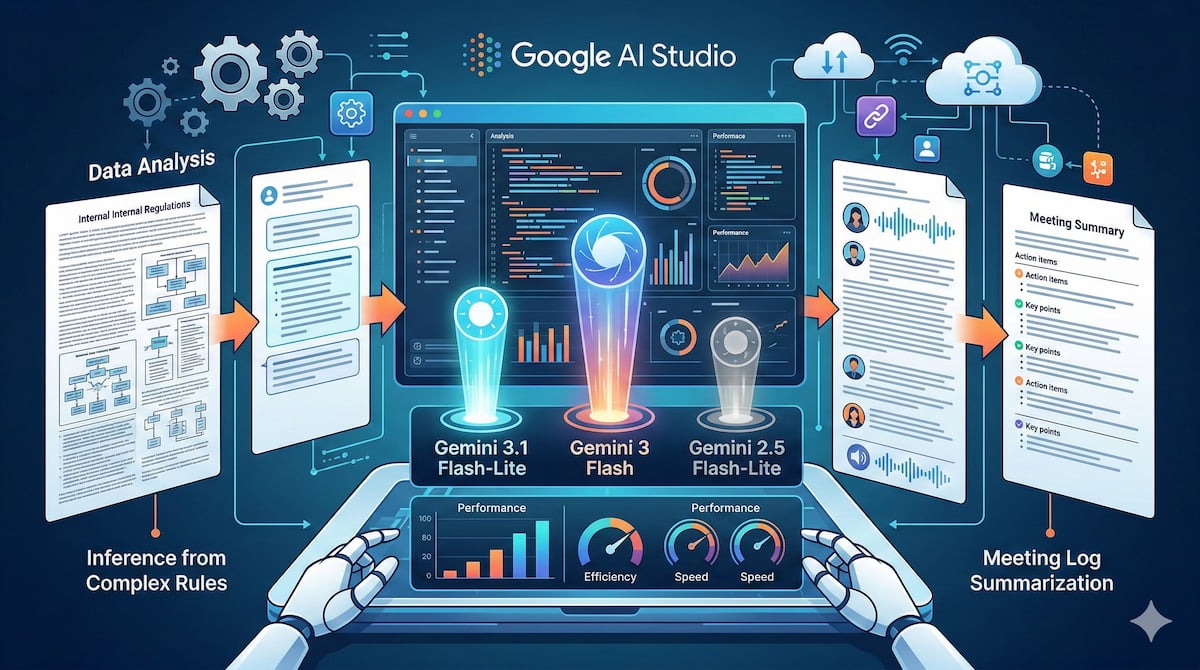 本記事では、Gemini 3.1 Flash-Liteモデルについて、具体的なベンチマークスコアの比較と、Google AI Studioを使用した検証を行い、その実力を徹底的に解剖します。 「とにかく安く大量に処理したいが、精度も譲れない」という企業のDX担当者にとって、必見の内容をお届けします。
