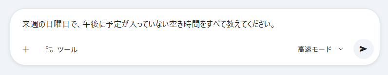 予定の読み込み スケジュールの把握や細かな調整も、Geminiを通じて非常にスムーズに行えます。主な確認操作は以下の通りです。