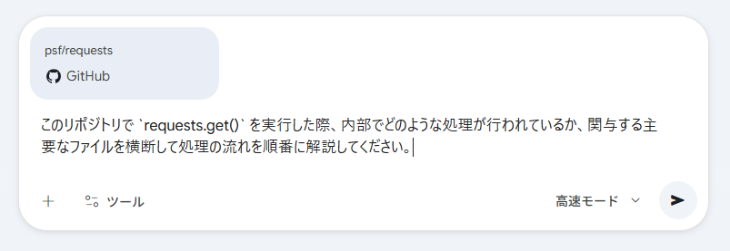 ここからは、最も手軽に導入できるGeminiのアプリ連携を利用して、実際にGitHubリポジトリを分析する検証を行います。分析対象のリポジトリは、Pythonの有名なHTTPライブラリである「psf/requests」です。なお検証は、Google AI Proを契約している個人アカウントで行いました。