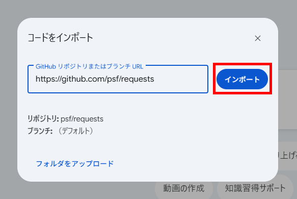 2.リポジトリのURLを入力し、「インポート」をクリック
