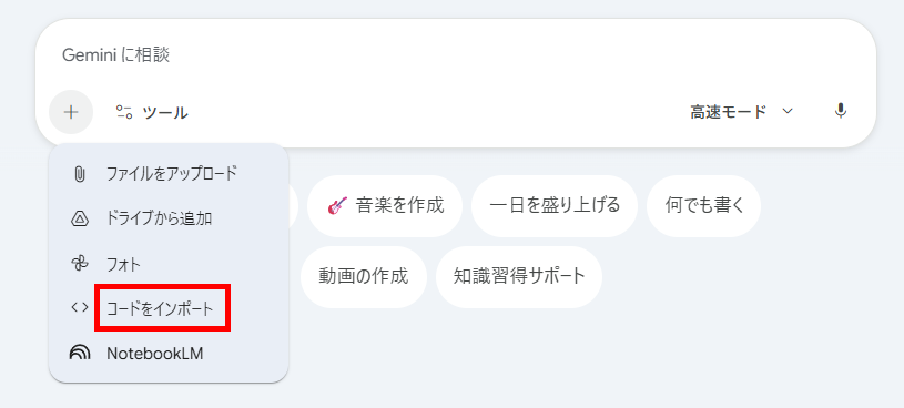 1.チャット画面を開き、「+」マークから「コードをインポート」を選択