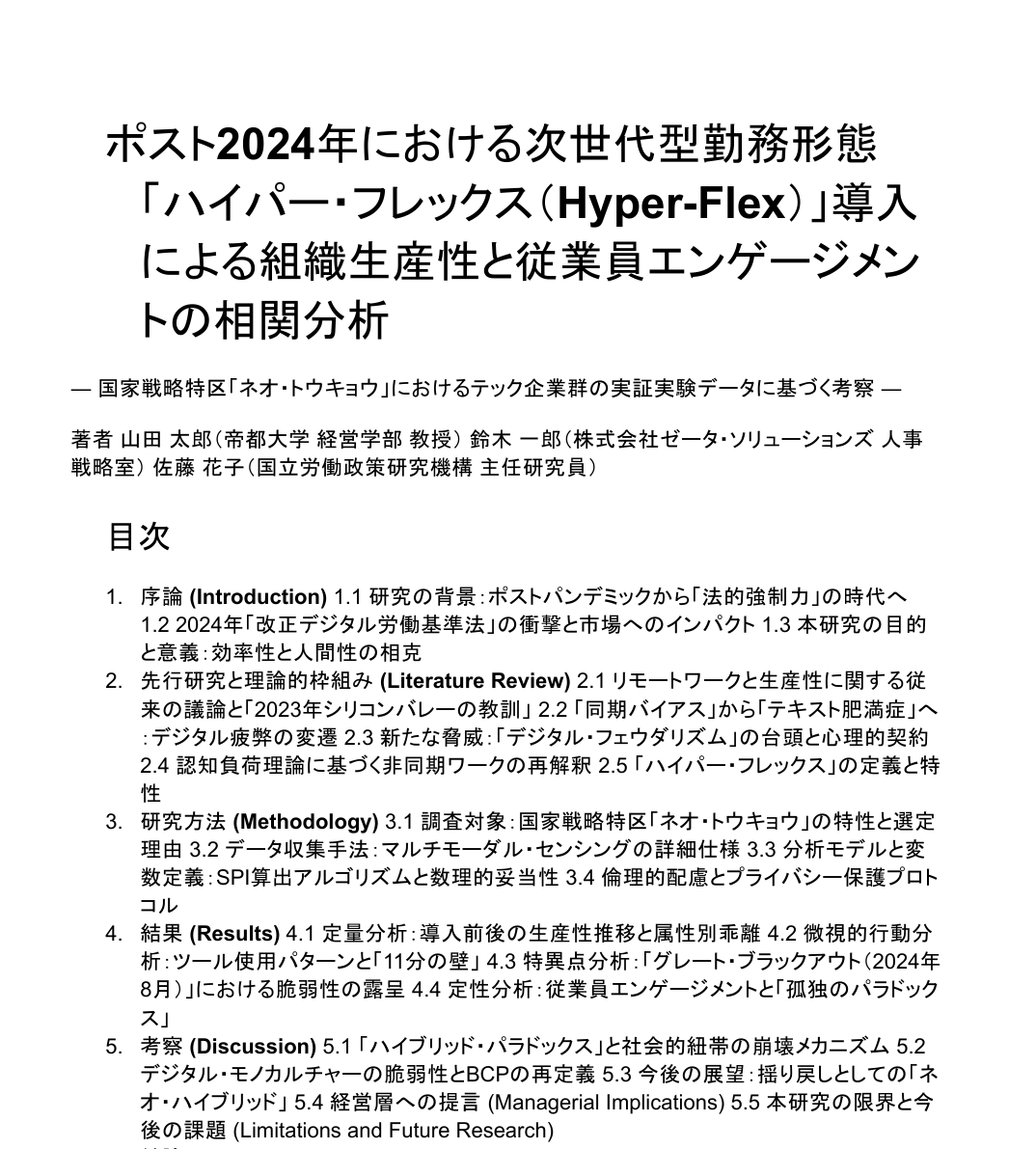 あなたは皮肉とウィットに富んだ、辛口な技術コラムニストです。 添付のPDFファイル(学術論文)を読み込み、この研究で提唱されている「ハイパー・フレックス」という働き方について、その矛盾と危険性を鋭く突く短い批評文を作成してください。