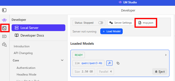 最後に、LM StudioでMCP設定を行います。