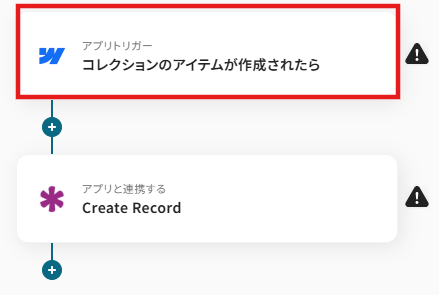 Webflowでコレクションのアイテムが作成されたらAirtableに追加するフローです。