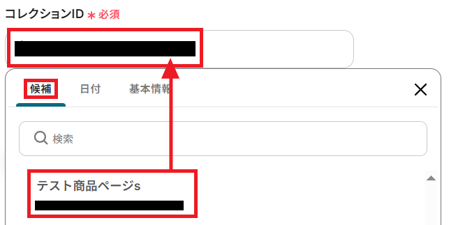「コレクションID」にはアイテムが登録・公開される予定の、Webflow内のコレクションを候補から選んでください。