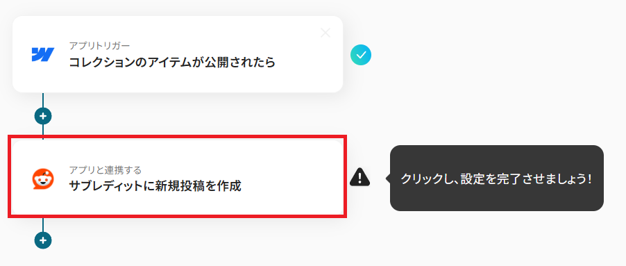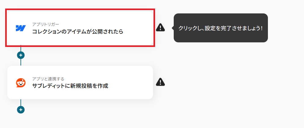 - Webflowのトリガー設定およびRedditのアクション設定