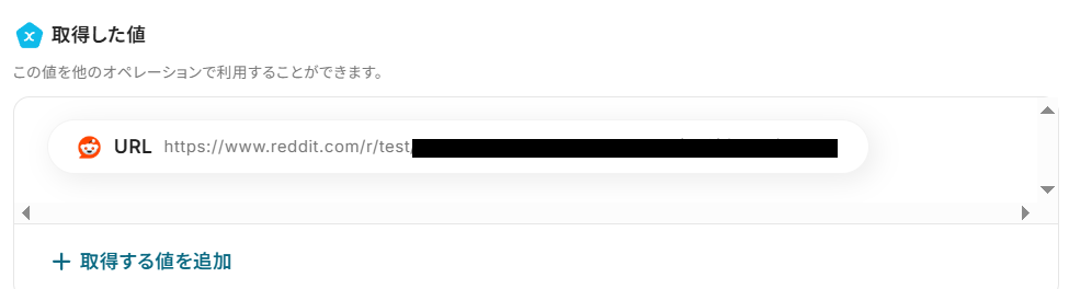 ちなみに取得した値は、「+取得する値を追加」ボタンで増やすこともできます。