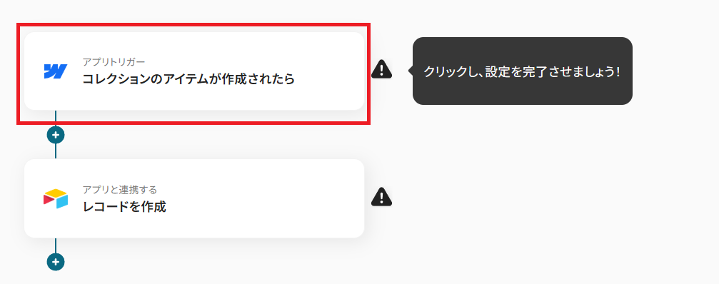 Webflowにアイテムが作成されたという情報をYoomで受け取ったら、その情報を活用してAirtableにレコードを作成していきましょう。