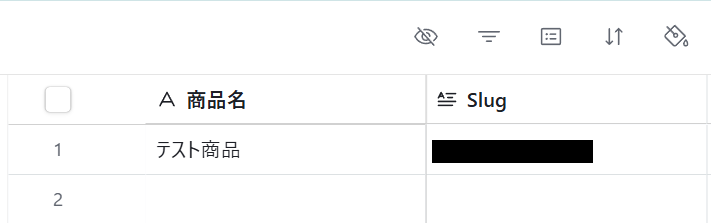 試しにAirtableにログインして、該当データベースにアクセスしてみましょう。しっかりWebflowのアイテム名やSlugが反映されていますね。