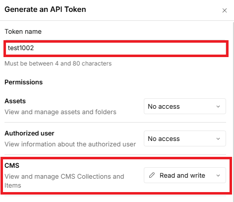また、「CMS」「Forms」「Sites」の「Read and Write」権限を設定してください。