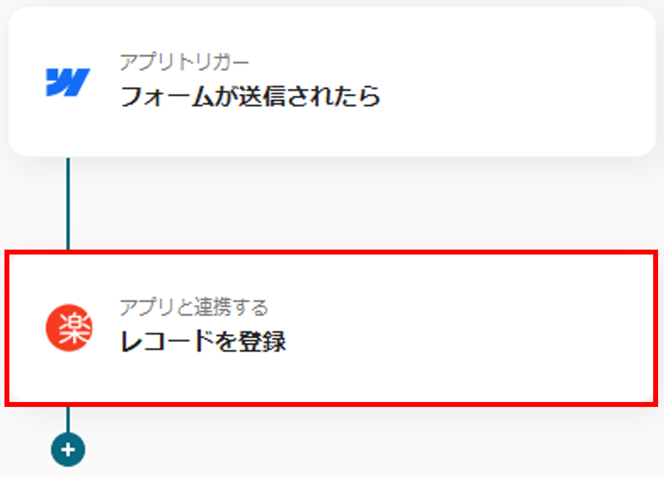 Webflowのフォームが送信されると、その内容を楽楽販売に自動でレコードとして登録するフローです。