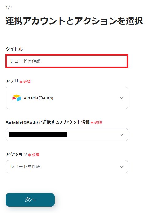 3. 連携アカウントとアクションを選択します。