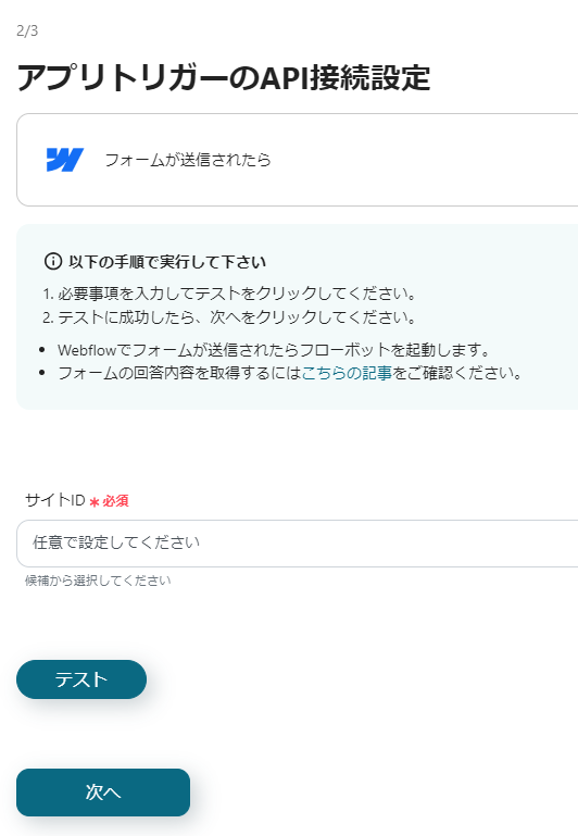 ステップ3: Webflowのトリガーの設定