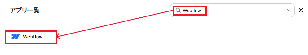 アプリ一覧の検索窓から、Webflowを検索し、クリックします。