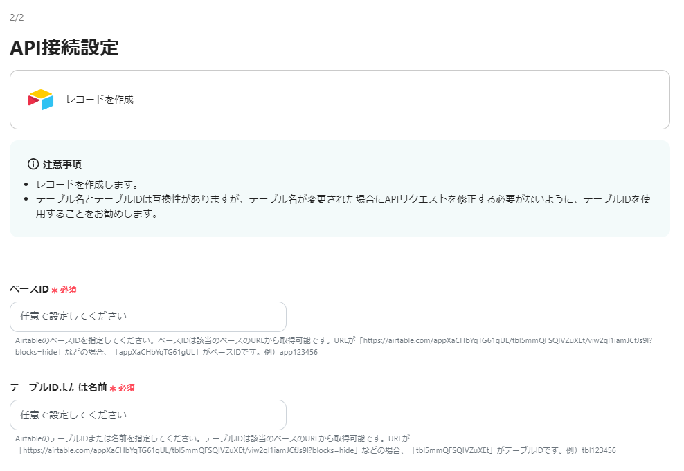 ・AirtableのアウトプットはJSONPathから取得可能です。取得方法は下記をご参照ください。