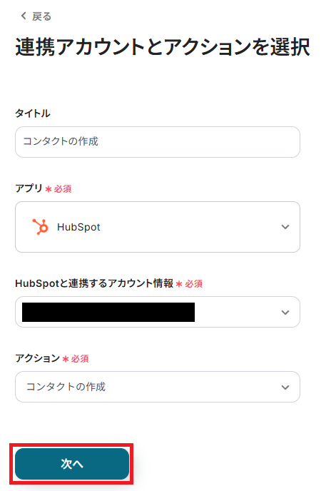 取得した情報を基に、HubSpotにコンタクトを自動作成する設定をしていきます。
