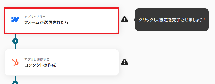 - Webflowのトリガー設定とHubSpotのアクション設定