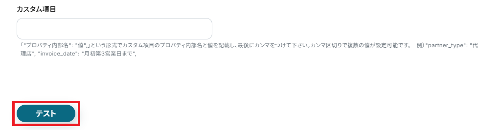 ここまで設定が完了したら連携テストを行います。テストボタンをクリックしましょう。