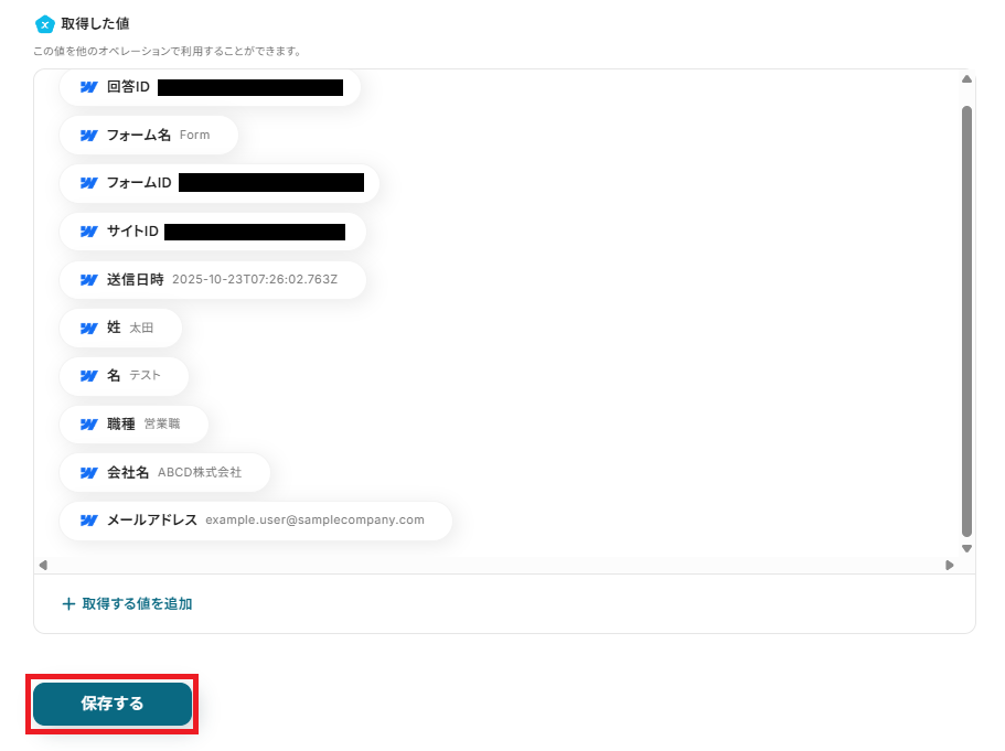 確認できたら、Yoomに戻り「保存する」を押してください。