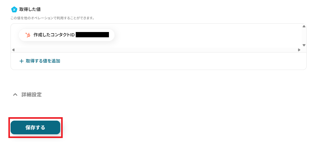HubSpotへ連携したいデータの設定が完了したら「保存する」をクリックし、次へ進みます。