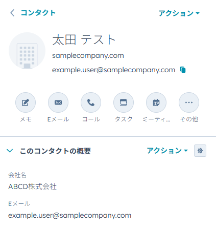 また実際に、コンタクトが作成されるのでHubSpotを確認してみましょう。