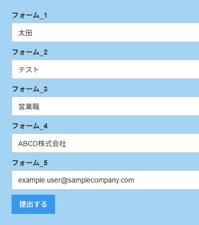 テスト送信するフォームの内容は、架空の情報(「山田テスト」や「テスト株式会社」など)でOKです。