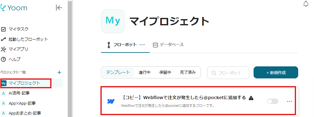 Yoomには、Webflowと@pocketを利用した自動化例が多数あります。