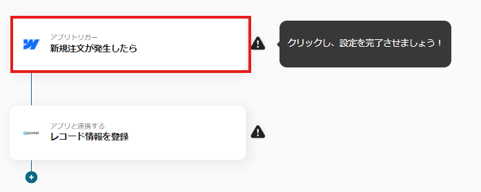 次に、アプリトリガー「新規注文が発生したら」をクリックしましょう。
