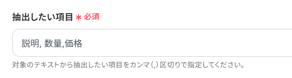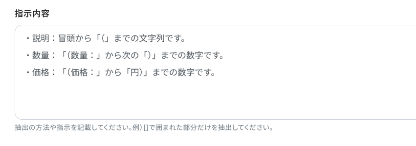 指定した項目を抽出するための「指示内容」を、AIが理解しやすい内容で記載してください。
