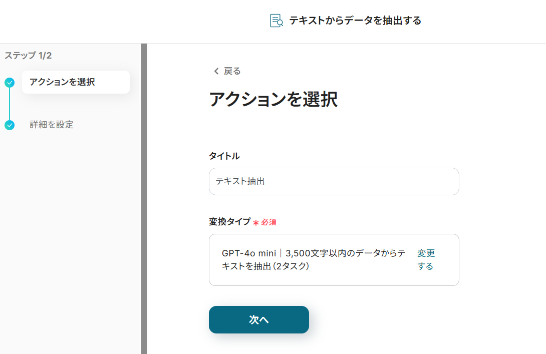 「変換タイプ」では、AIがテキストを抽出するために必要なモデルを選択できます。デフォルトでは3,500文字以内のテキストになっていますが、それ以上の文字数を処理するモデルも選択可能です。