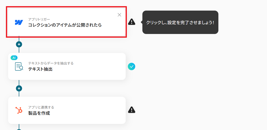 今回はWebflowでアイテムが公開されたら、テキストを抽出してHubSpotで製品を作成するフローを作成していきます!
