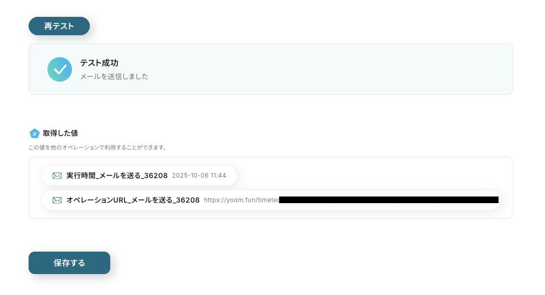 このステップで取得した値はこの後のステップで活用できます。後続のアクションを設定する際に変数として活用できるので、ここで得た情報をそのままメールの本文などに反映できるようになります!